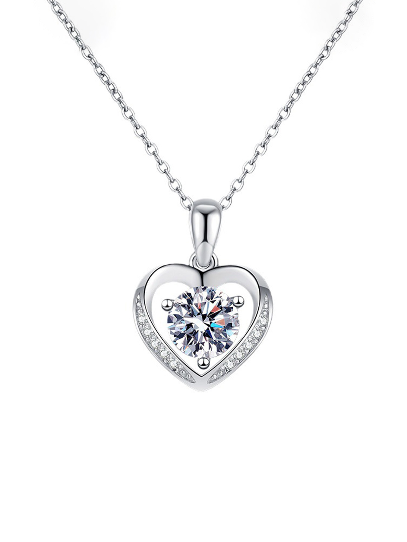Ce collier en argent 925 dévoile un pendentif en forme de cœur délicatement pavé de pierres étincelantes, mettant en valeur une moissanite centrale d’une brillance incomparable. Symbole d’un amour éternel et d’une lumière qui ne s’éteint jamais, l’Éclat Infini se porte aussi bien au quotidien que lors des plus belles occasions, illuminant chaque mouvement d’un éclat pur et intemporel.